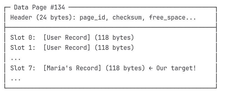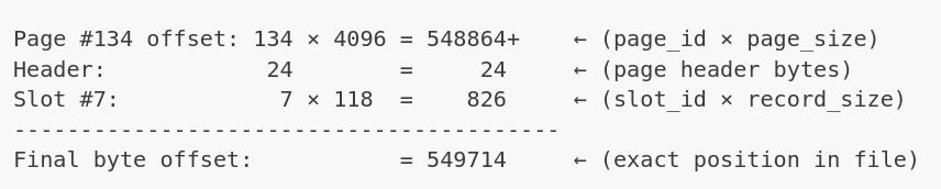 (page_id, slot_id)that become pure math:page_id × 4096 + slot_id × record_size