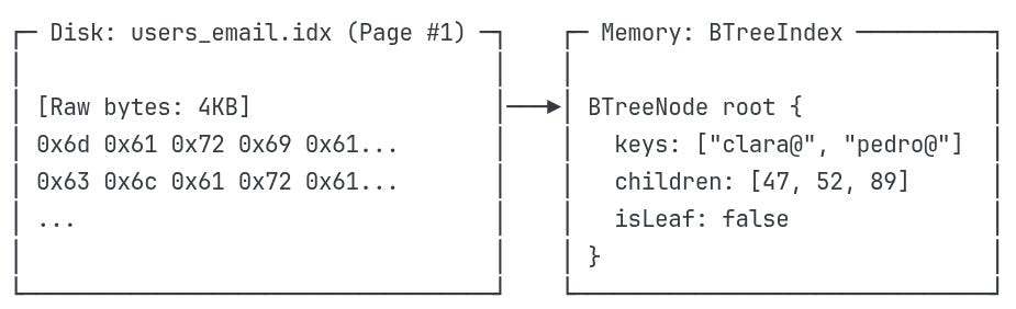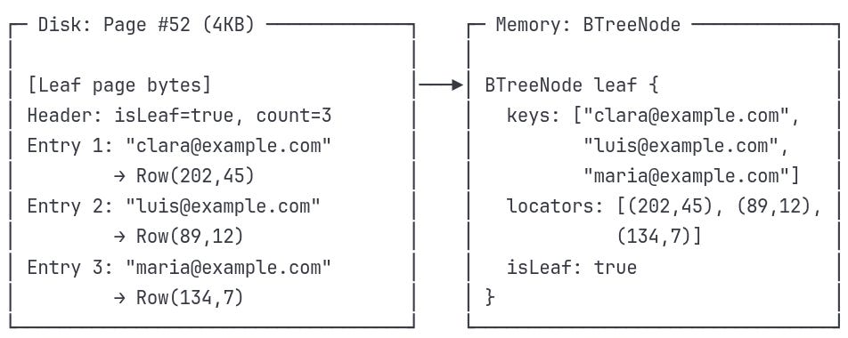 BTreeNode.keys,BTreeNode.children)On Disk: Raw bytes stored in files (